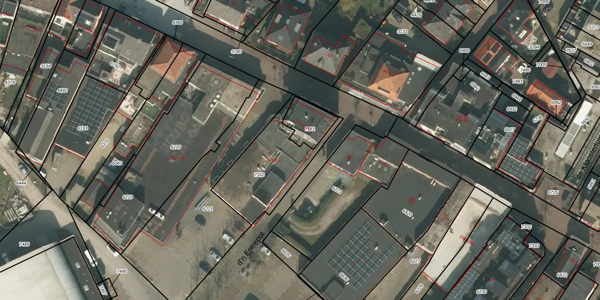 Het perceel waarop d'n Entrepot 2-b staat heeft een oppervlakte van 660 m². Dit is een groot perceel. De perceeloppervlakte wordt geregistreerd door het Kadaster. Gedetailleerde informatie over de maten van dit perceel kunt u vinden in het rapport Kadastrale kaart met maatvoering van d'n Entrepot 2-b.