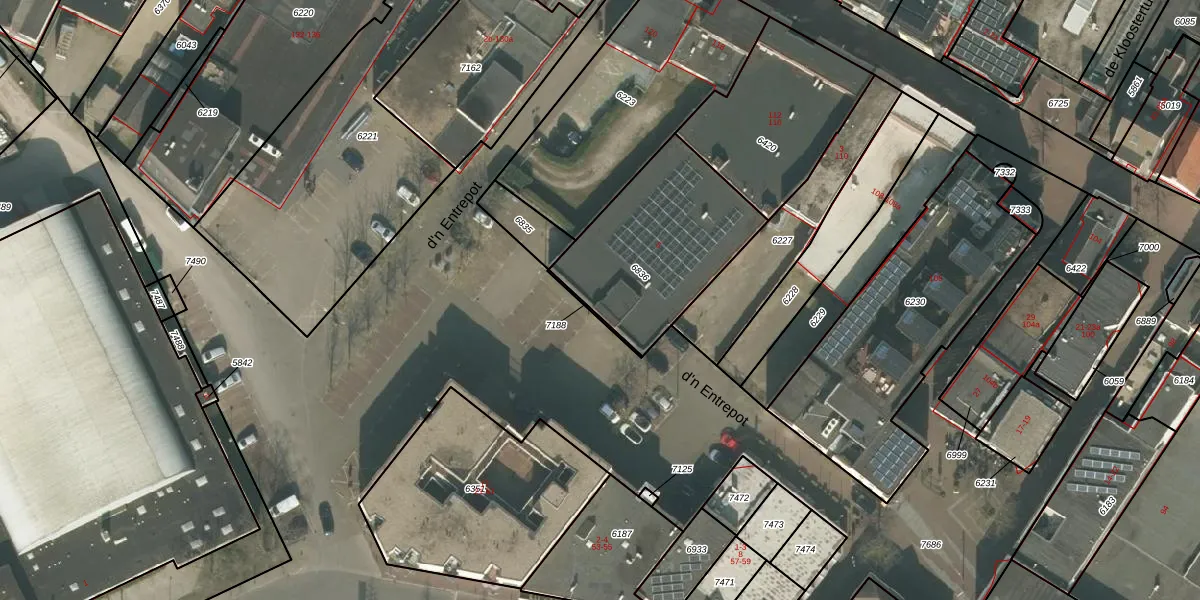 Het perceel waarop d'n Entrepot 5 staat heeft een oppervlakte van 651 m². Dit is een groot perceel. De perceeloppervlakte wordt geregistreerd door het Kadaster. Gedetailleerde informatie over de maten van dit perceel kunt u vinden in het rapport Kadastrale kaart met maatvoering van d'n Entrepot 5.