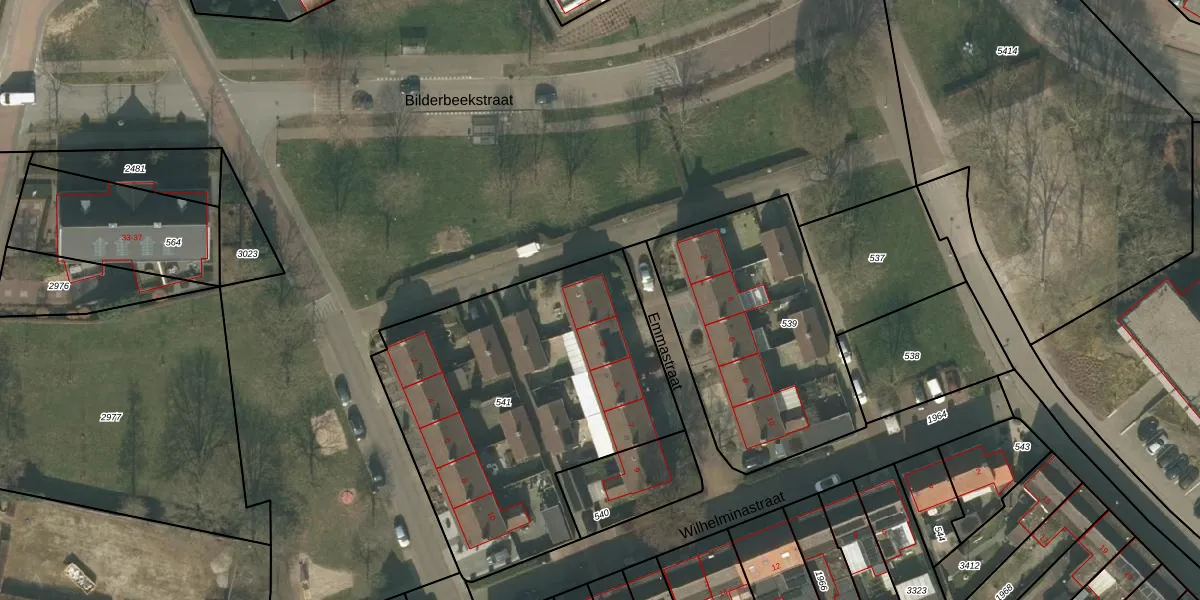 Emmastraat 1 is gelegen op kadastraal perceel BMR00L541. Deze kadastrale aanduiding is uniek en wordt gebruikt door het Kadaster om eigendomsrechten en andere zakelijke rechten vast te leggen. Het perceel maakt onderdeel uit van de kadastrale gemeente Boxmeer.