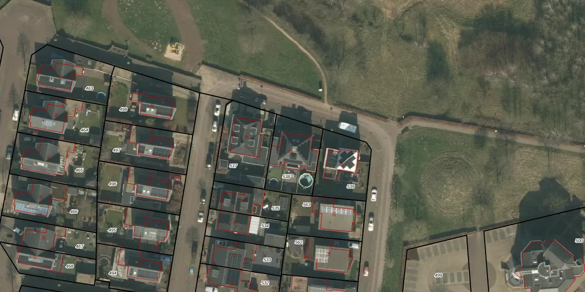 Gebruik de zoekbalk of klik op een perceel voor informatie over de adressen binnen dit perceel.