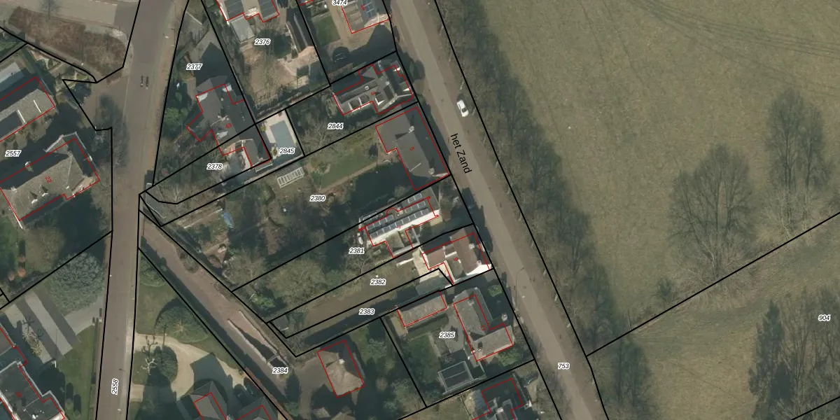 het Zand 7 is gelegen op kadastraal perceel BMR00L2381. Deze kadastrale aanduiding is uniek en wordt gebruikt door het Kadaster om eigendomsrechten en andere zakelijke rechten vast te leggen. Het perceel maakt onderdeel uit van de kadastrale gemeente Boxmeer.