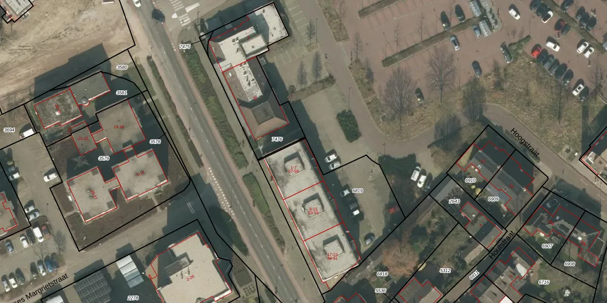 Hoogstraat 1 is gelegen op kadastraal perceel BMR00D6819. Deze kadastrale aanduiding is uniek en wordt gebruikt door het Kadaster om eigendomsrechten en andere zakelijke rechten vast te leggen. Het perceel maakt onderdeel uit van de kadastrale gemeente Boxmeer.