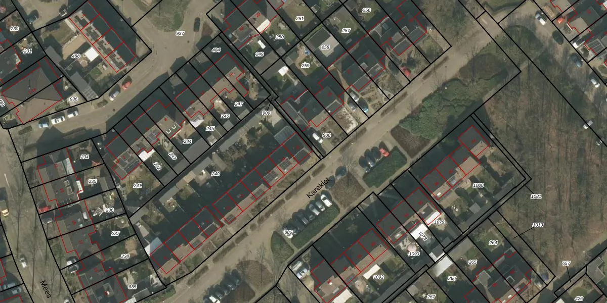 Het perceel waarop Karekiet 21 staat heeft een oppervlakte van 1710 m². Dit is een zeer groot perceel. De perceeloppervlakte wordt geregistreerd door het Kadaster. Gedetailleerde informatie over de maten van dit perceel kunt u vinden in het rapport Kadastrale kaart met maatvoering van Karekiet 21.