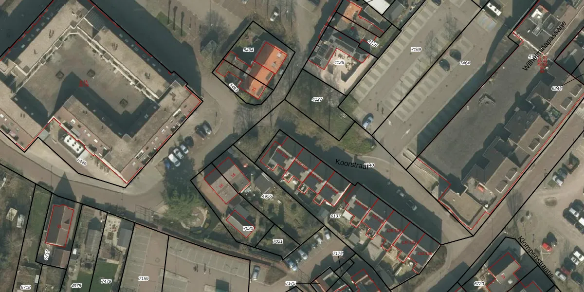 Het perceel waarop Koorstraat 102 staat heeft een oppervlakte van 1214 m². Dit is een zeer groot perceel. De perceeloppervlakte wordt geregistreerd door het Kadaster. Gedetailleerde informatie over de maten van dit perceel kunt u vinden in het rapport Kadastrale kaart met maatvoering van Koorstraat 102.
