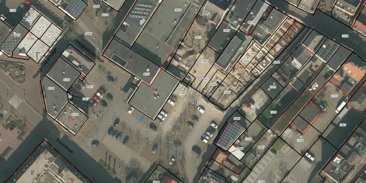 Het perceel waarop Koorstraat 69-c staat heeft een oppervlakte van 3,9 ha. Dit is een zeer groot perceel. De perceeloppervlakte wordt geregistreerd door het Kadaster. Gedetailleerde informatie over de maten van dit perceel kunt u vinden in het rapport Kadastrale kaart met maatvoering van Koorstraat 69-c.