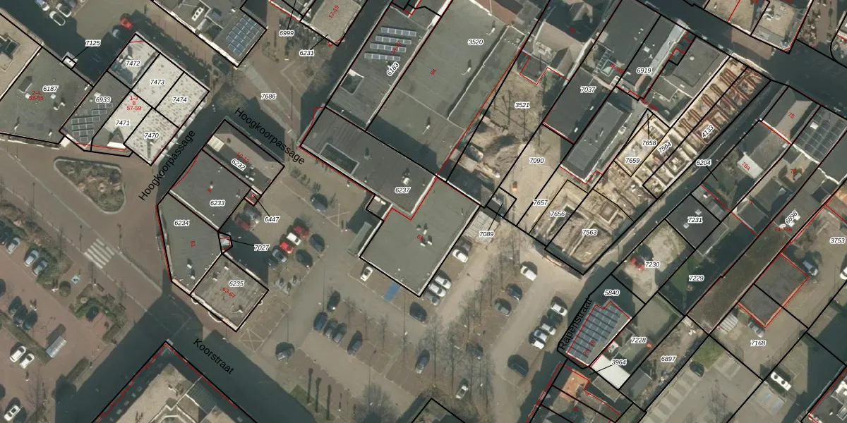 Het perceel waarop Koorstraat 69-d staat heeft een oppervlakte van 760 m². Dit is een groot perceel. De perceeloppervlakte wordt geregistreerd door het Kadaster. Gedetailleerde informatie over de maten van dit perceel kunt u vinden in het rapport Kadastrale kaart met maatvoering van Koorstraat 69-d.