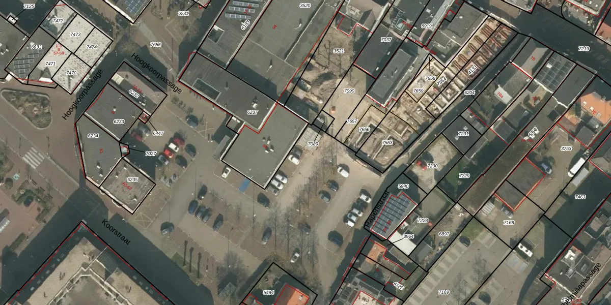 Het perceel waarop Koorstraat 69-h staat heeft een oppervlakte van 3,9 ha. Dit is een zeer groot perceel. De perceeloppervlakte wordt geregistreerd door het Kadaster. Gedetailleerde informatie over de maten van dit perceel kunt u vinden in het rapport Kadastrale kaart met maatvoering van Koorstraat 69-h.
