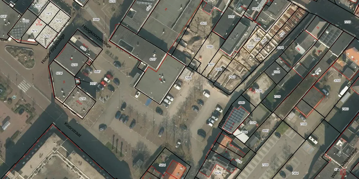 Het perceel waarop Koorstraat 69-m staat heeft een oppervlakte van 3,9 ha. Dit is een zeer groot perceel. De perceeloppervlakte wordt geregistreerd door het Kadaster. Gedetailleerde informatie over de maten van dit perceel kunt u vinden in het rapport Kadastrale kaart met maatvoering van Koorstraat 69-m.