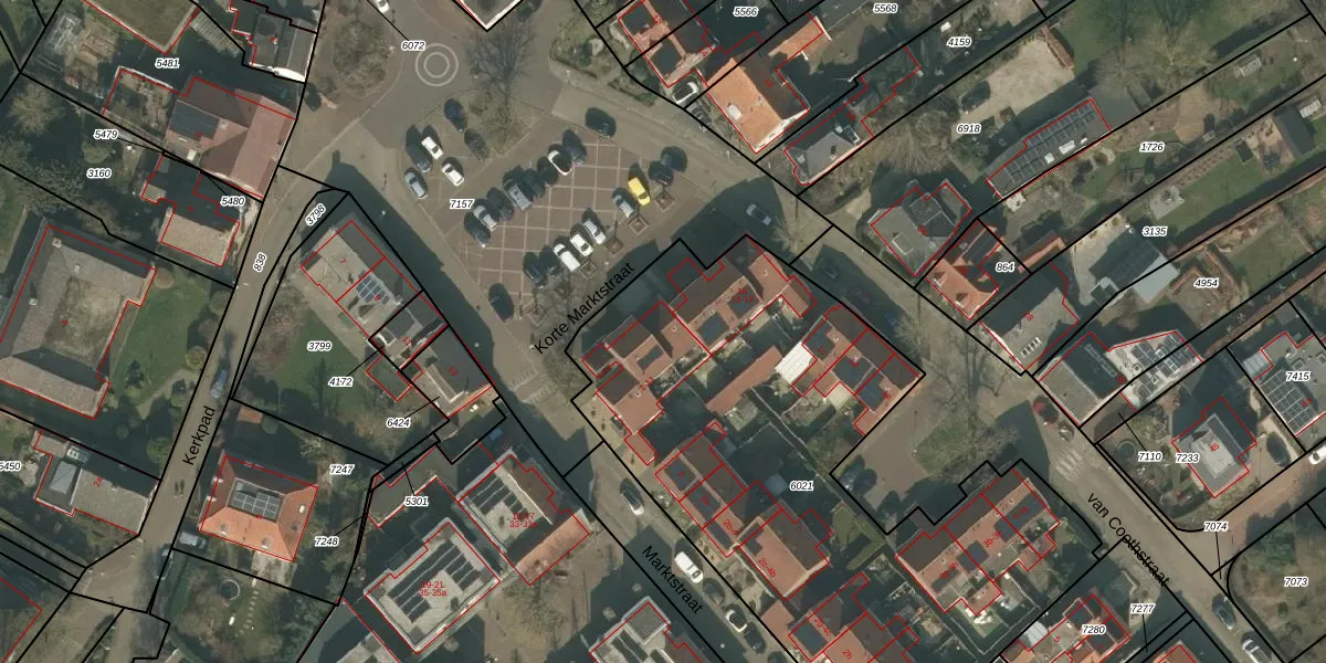 Het perceel waarop Korte Marktstraat 9 staat heeft een oppervlakte van 2930 m². Dit is een zeer groot perceel. De perceeloppervlakte wordt geregistreerd door het Kadaster. Gedetailleerde informatie over de maten van dit perceel kunt u vinden in het rapport Kadastrale kaart met maatvoering van Korte Marktstraat 9.