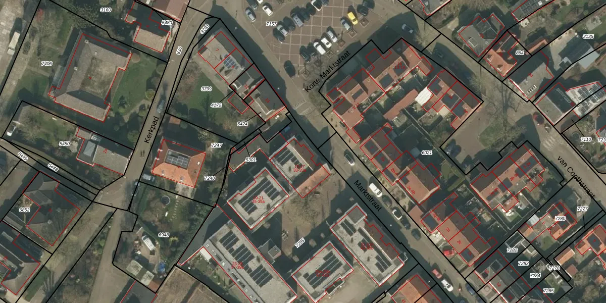 Het perceel waarop Marktstraat 15 staat heeft een oppervlakte van 3321 m². Dit is een zeer groot perceel. De perceeloppervlakte wordt geregistreerd door het Kadaster. Gedetailleerde informatie over de maten van dit perceel kunt u vinden in het rapport Kadastrale kaart met maatvoering van Marktstraat 15.