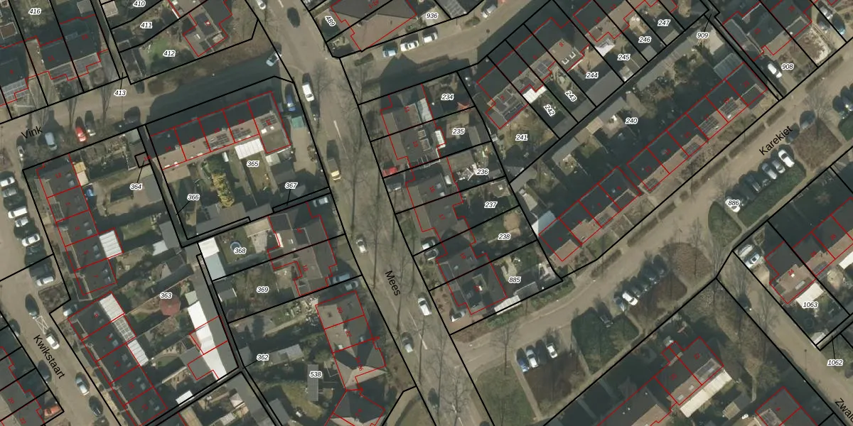 Het perceel waarop Mees 17 staat heeft een oppervlakte van 254 m². Dit is een middelgroot perceel. De perceeloppervlakte wordt geregistreerd door het Kadaster. Gedetailleerde informatie over de maten van dit perceel kunt u vinden in het rapport Kadastrale kaart met maatvoering van Mees 17.