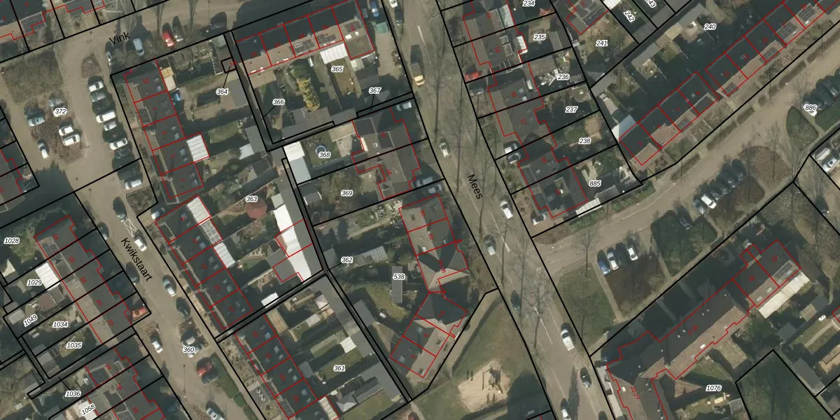 Het perceel waarop Mees 20 staat heeft een oppervlakte van 1260 m². Dit is een zeer groot perceel. De perceeloppervlakte wordt geregistreerd door het Kadaster. Gedetailleerde informatie over de maten van dit perceel kunt u vinden in het rapport Kadastrale kaart met maatvoering van Mees 20.