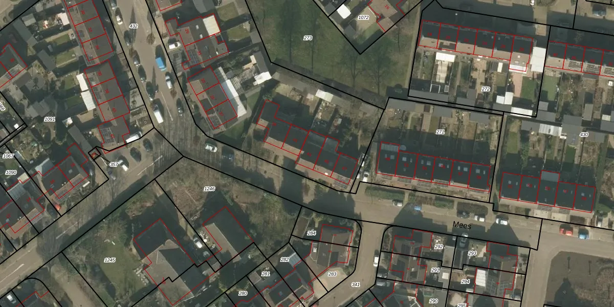 Het perceel waarop Mees 43 staat heeft een oppervlakte van 4872 m². Dit is een zeer groot perceel. De perceeloppervlakte wordt geregistreerd door het Kadaster. Gedetailleerde informatie over de maten van dit perceel kunt u vinden in het rapport Kadastrale kaart met maatvoering van Mees 43.