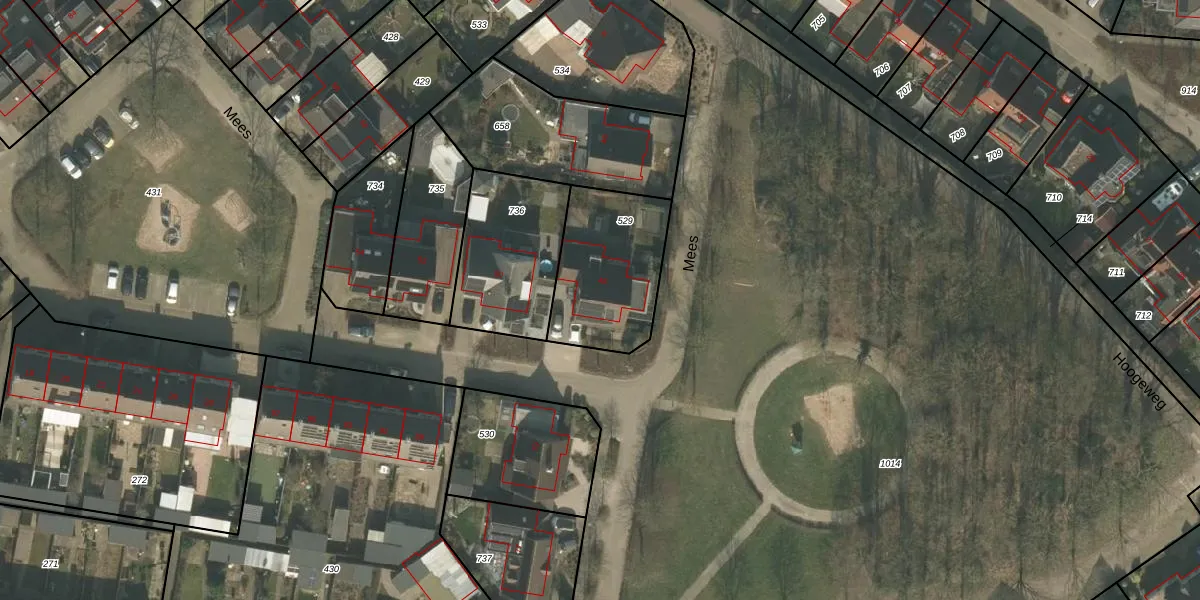 Het perceel waarop Mees 48 staat heeft een oppervlakte van 444 m². Dit is een groot perceel. De perceeloppervlakte wordt geregistreerd door het Kadaster. Gedetailleerde informatie over de maten van dit perceel kunt u vinden in het rapport Kadastrale kaart met maatvoering van Mees 48.