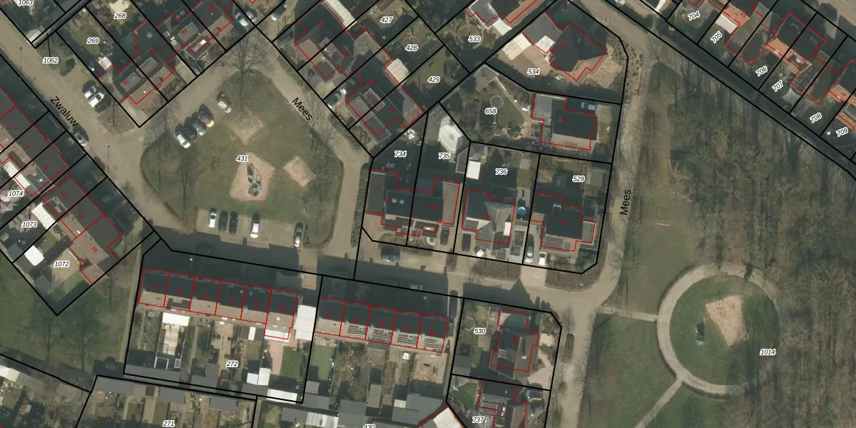 Gebruik de zoekbalk of klik op een perceel voor informatie over de adressen binnen dit perceel.