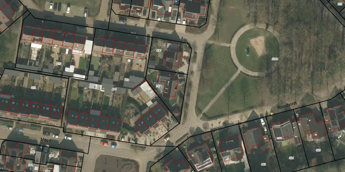 Het perceel waarop Mees 77 staat heeft een oppervlakte van 419 m². Dit is een groot perceel. De perceeloppervlakte wordt geregistreerd door het Kadaster. Gedetailleerde informatie over de maten van dit perceel kunt u vinden in het rapport Kadastrale kaart met maatvoering van Mees 77.