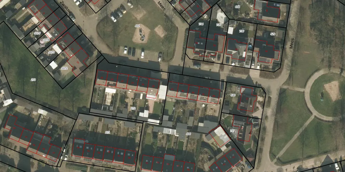 Het perceel waarop Mees 97 staat heeft een oppervlakte van 2940 m². Dit is een zeer groot perceel. De perceeloppervlakte wordt geregistreerd door het Kadaster. Gedetailleerde informatie over de maten van dit perceel kunt u vinden in het rapport Kadastrale kaart met maatvoering van Mees 97.