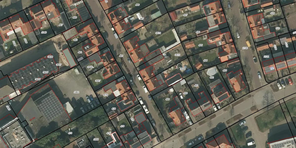 Nassaustraat 3 is gelegen op kadastraal perceel BMR00L3572. Deze kadastrale aanduiding is uniek en wordt gebruikt door het Kadaster om eigendomsrechten en andere zakelijke rechten vast te leggen. Het perceel maakt onderdeel uit van de kadastrale gemeente Boxmeer.