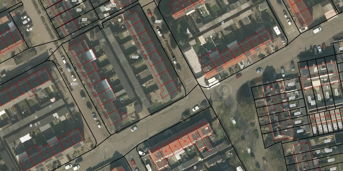 Het perceel waarop Pieter Poststraat 2 staat heeft een oppervlakte van 3090 m². Dit is een zeer groot perceel. De perceeloppervlakte wordt geregistreerd door het Kadaster. Gedetailleerde informatie over de maten van dit perceel kunt u vinden in het rapport Kadastrale kaart met maatvoering van Pieter Poststraat 2.