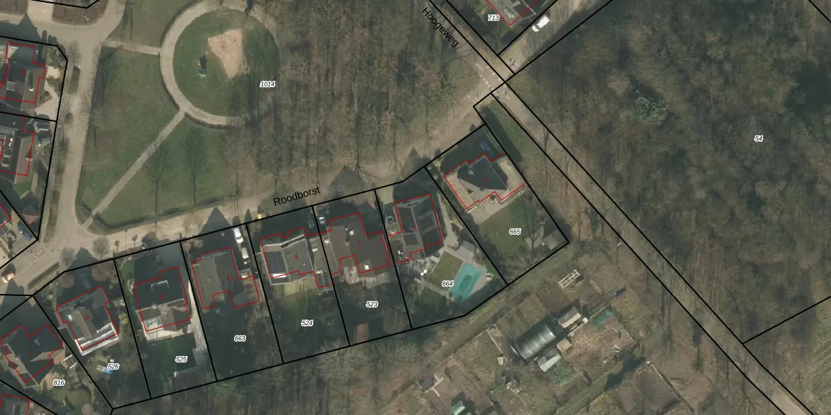 Gebruik de zoekbalk of klik op een perceel voor informatie over de adressen binnen dit perceel.