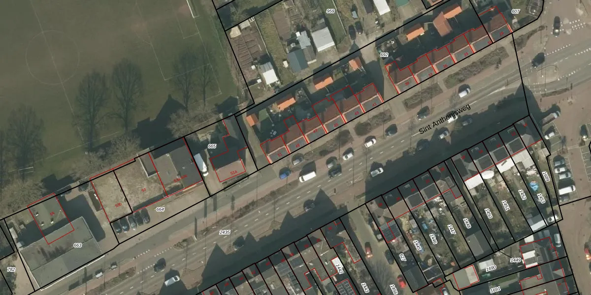 Het perceel waarop Sint Anthonisweg 49 staat heeft een oppervlakte van 2030 m². Dit is een zeer groot perceel. De perceeloppervlakte wordt geregistreerd door het Kadaster. Gedetailleerde informatie over de maten van dit perceel kunt u vinden in het rapport Kadastrale kaart met maatvoering van Sint Anthonisweg 49.