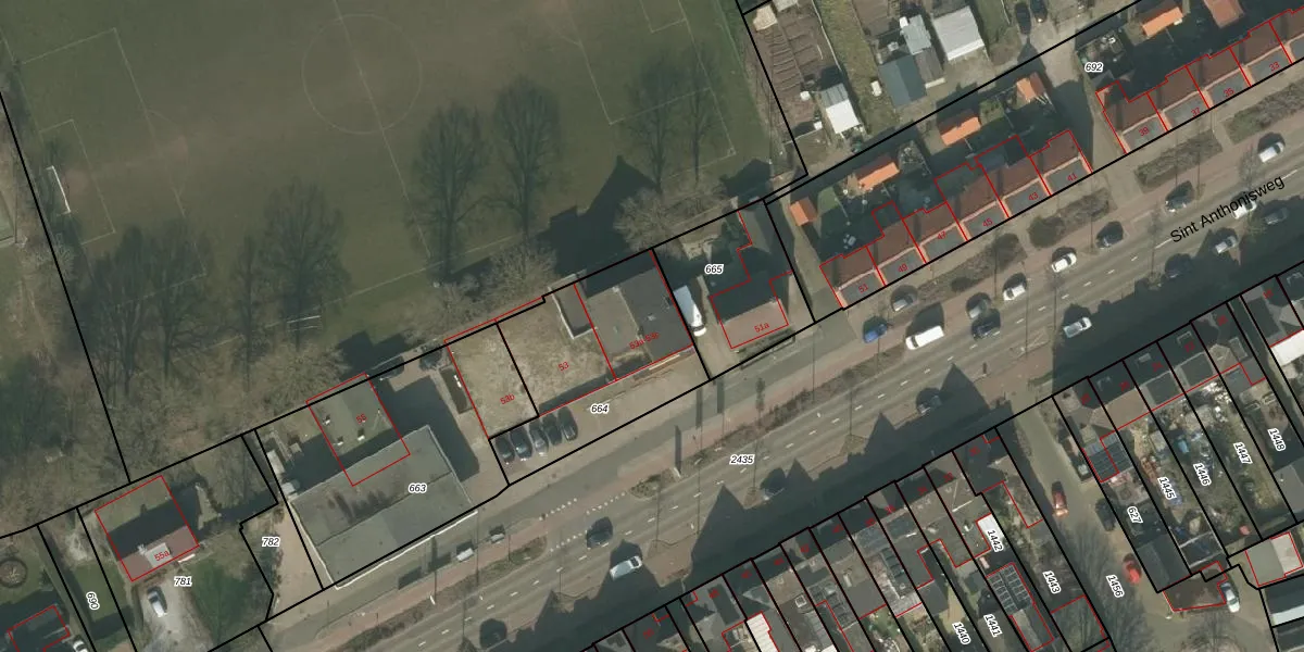 Het perceel waarop Sint Anthonisweg 53-a staat heeft een oppervlakte van 660 m². Dit is een groot perceel. De perceeloppervlakte wordt geregistreerd door het Kadaster. Gedetailleerde informatie over de maten van dit perceel kunt u vinden in het rapport Kadastrale kaart met maatvoering van Sint Anthonisweg 53-a.