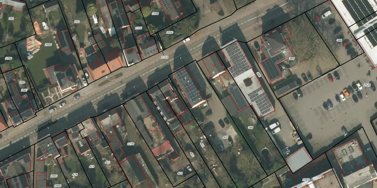 Het perceel waarop Spoorstraat 12-d staat heeft een oppervlakte van 1227 m². Dit is een zeer groot perceel. De perceeloppervlakte wordt geregistreerd door het Kadaster. Gedetailleerde informatie over de maten van dit perceel kunt u vinden in het rapport Kadastrale kaart met maatvoering van Spoorstraat 12-d.