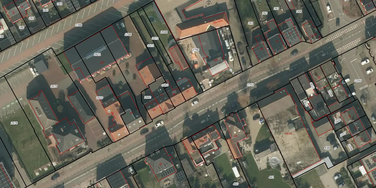 Spoorstraat 57 is gelegen op kadastraal perceel BMR00L2694. Deze kadastrale aanduiding is uniek en wordt gebruikt door het Kadaster om eigendomsrechten en andere zakelijke rechten vast te leggen. Het perceel maakt onderdeel uit van de kadastrale gemeente Boxmeer.