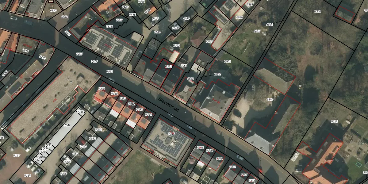 Steenstraat 5 is gelegen op kadastraal perceel BMR00D6813. Deze kadastrale aanduiding is uniek en wordt gebruikt door het Kadaster om eigendomsrechten en andere zakelijke rechten vast te leggen. Het perceel maakt onderdeel uit van de kadastrale gemeente Boxmeer.