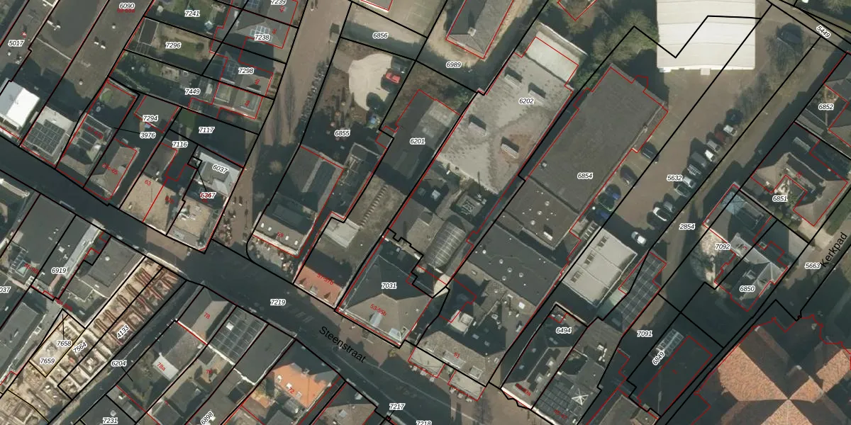 Steenstraat 55-b is gelegen op kadastraal perceel BMR00D6202. Deze kadastrale aanduiding is uniek en wordt gebruikt door het Kadaster om eigendomsrechten en andere zakelijke rechten vast te leggen. Het perceel maakt onderdeel uit van de kadastrale gemeente Boxmeer.