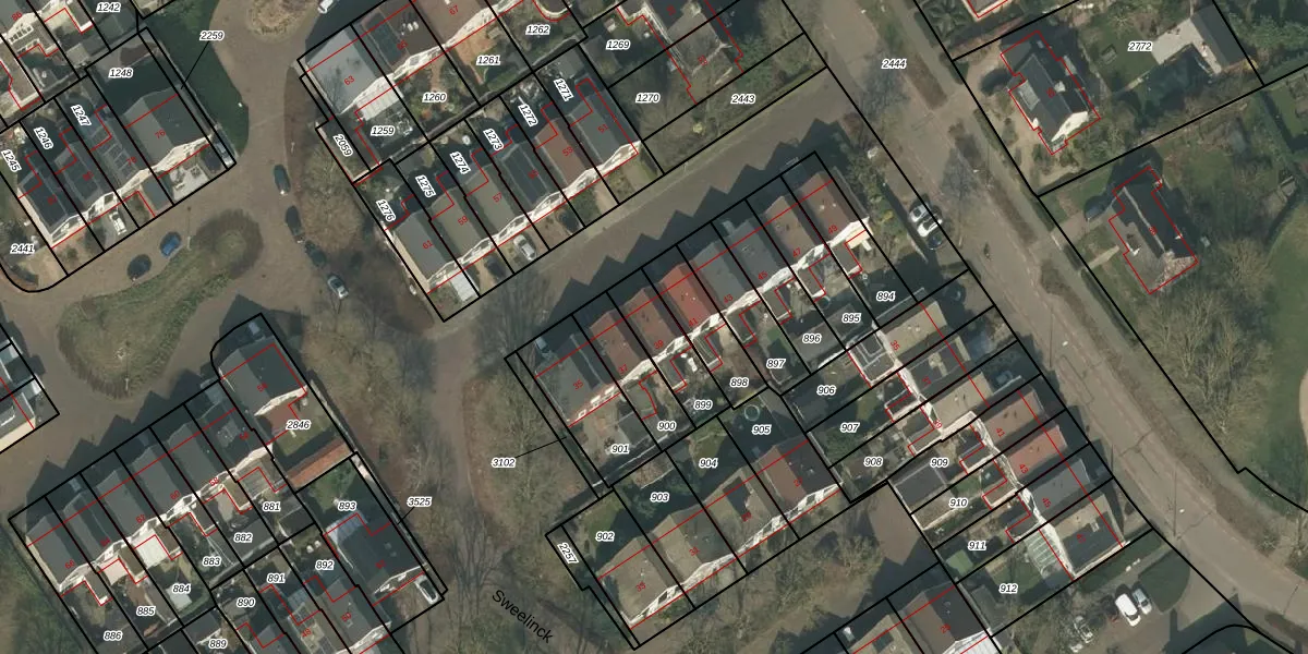 Het perceel waarop Sweelinck 39 staat heeft een oppervlakte van 161 m². Dit is een middelgroot perceel. De perceeloppervlakte wordt geregistreerd door het Kadaster. Gedetailleerde informatie over de maten van dit perceel kunt u vinden in het rapport Kadastrale kaart met maatvoering van Sweelinck 39.