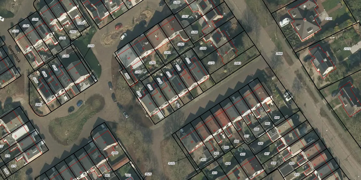 Het perceel waarop Sweelinck 55 staat heeft een oppervlakte van 154 m². Dit is een middelgroot perceel. De perceeloppervlakte wordt geregistreerd door het Kadaster. Gedetailleerde informatie over de maten van dit perceel kunt u vinden in het rapport Kadastrale kaart met maatvoering van Sweelinck 55.