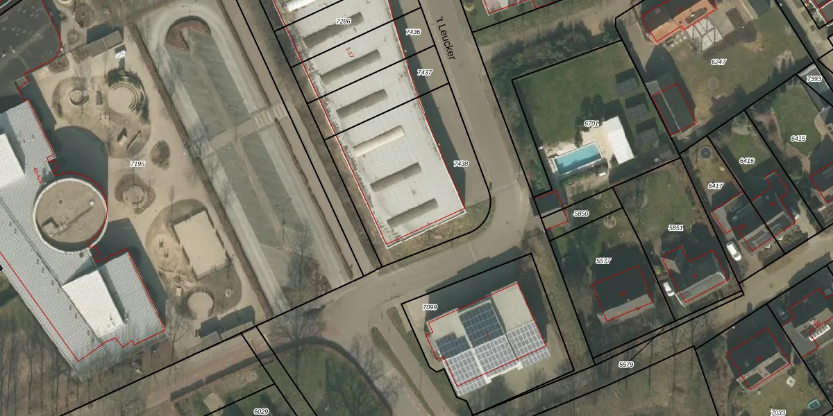 't Leucker 1 is gelegen op kadastraal perceel BMR00D7438. Deze kadastrale aanduiding is uniek en wordt gebruikt door het Kadaster om eigendomsrechten en andere zakelijke rechten vast te leggen. Het perceel maakt onderdeel uit van de kadastrale gemeente Boxmeer.