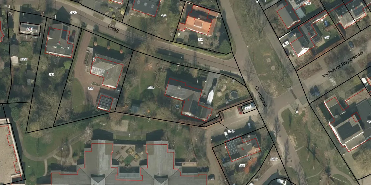 Het perceel waarop Uitleg 9 staat heeft een oppervlakte van 1851 m². Dit is een zeer groot perceel. De perceeloppervlakte wordt geregistreerd door het Kadaster. Gedetailleerde informatie over de maten van dit perceel kunt u vinden in het rapport Kadastrale kaart met maatvoering van Uitleg 9.