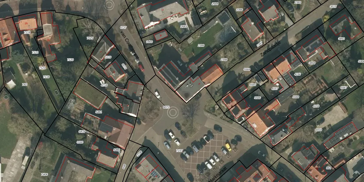 Gebruik de zoekbalk of klik op een perceel voor informatie over de adressen binnen dit perceel.