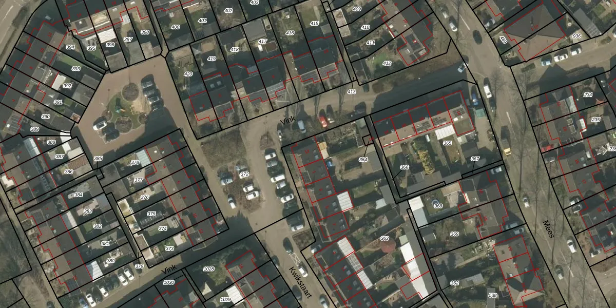 Het perceel waarop Vink 12 staat heeft een oppervlakte van 2010 m². Dit is een zeer groot perceel. De perceeloppervlakte wordt geregistreerd door het Kadaster. Gedetailleerde informatie over de maten van dit perceel kunt u vinden in het rapport Kadastrale kaart met maatvoering van Vink 12.