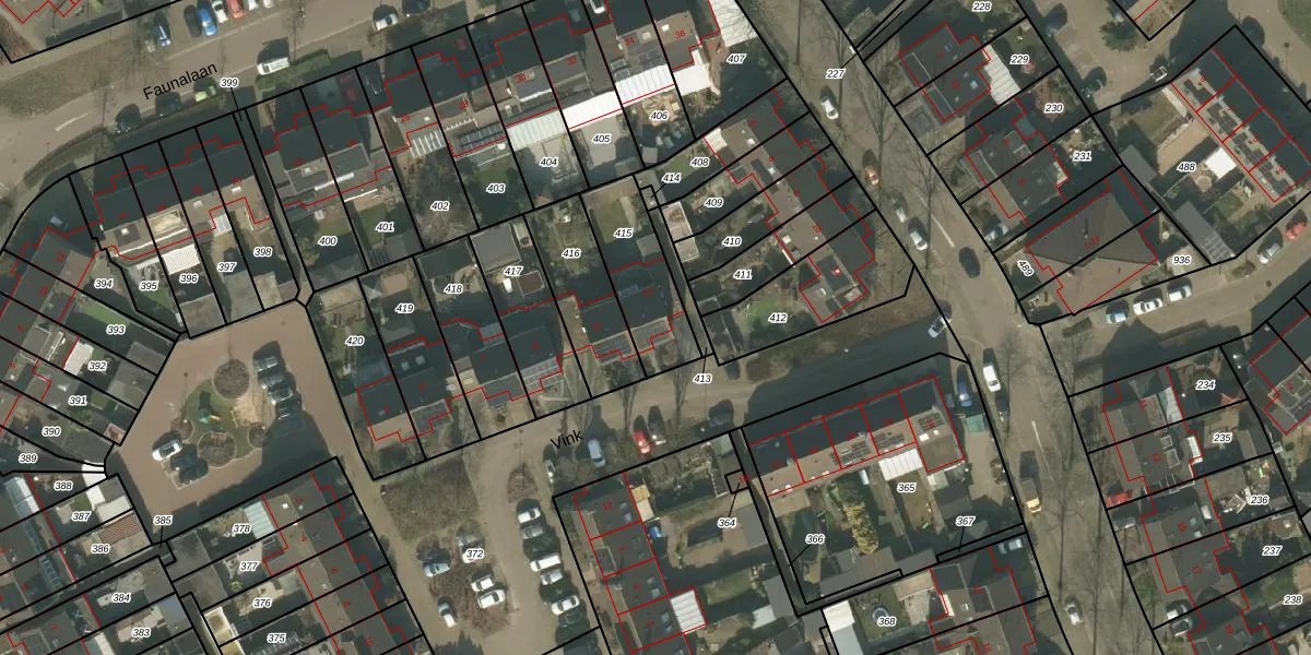 Het perceel waarop Vink 13 staat heeft een oppervlakte van 269 m². Dit is een middelgroot perceel. De perceeloppervlakte wordt geregistreerd door het Kadaster. Gedetailleerde informatie over de maten van dit perceel kunt u vinden in het rapport Kadastrale kaart met maatvoering van Vink 13.