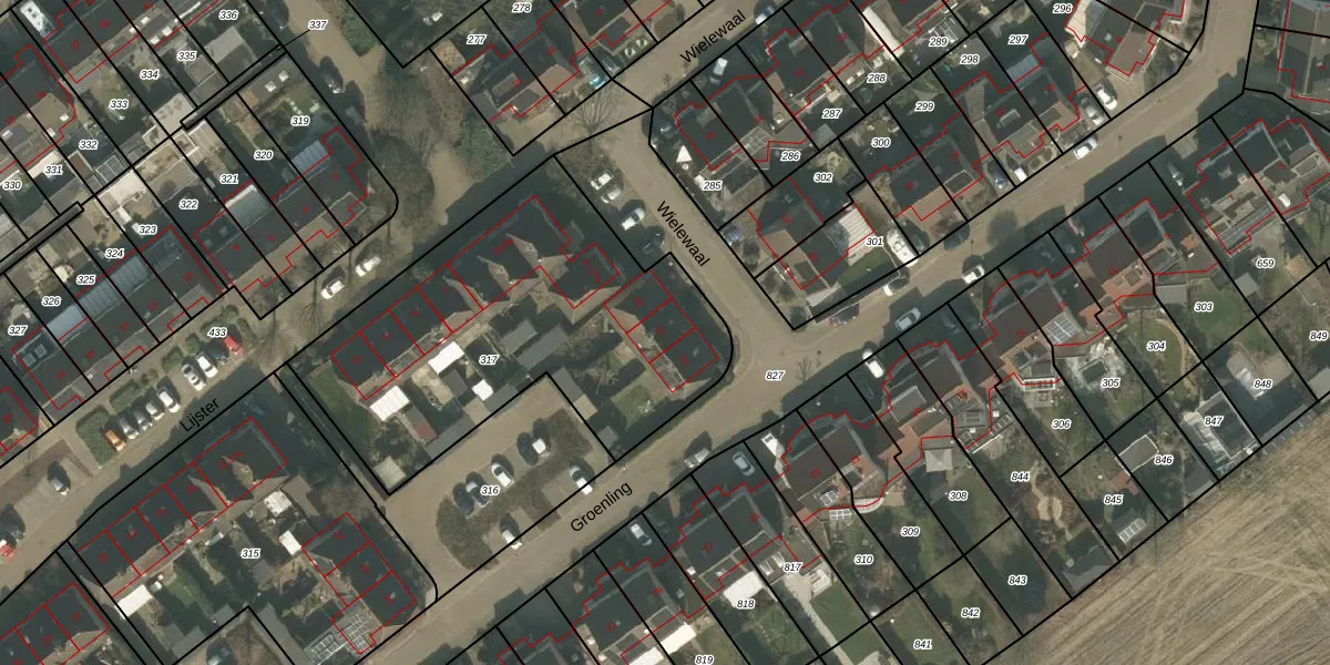 Het perceel waarop Wielewaal 21 staat heeft een oppervlakte van 1722 m². Dit is een zeer groot perceel. De perceeloppervlakte wordt geregistreerd door het Kadaster. Gedetailleerde informatie over de maten van dit perceel kunt u vinden in het rapport Kadastrale kaart met maatvoering van Wielewaal 21.