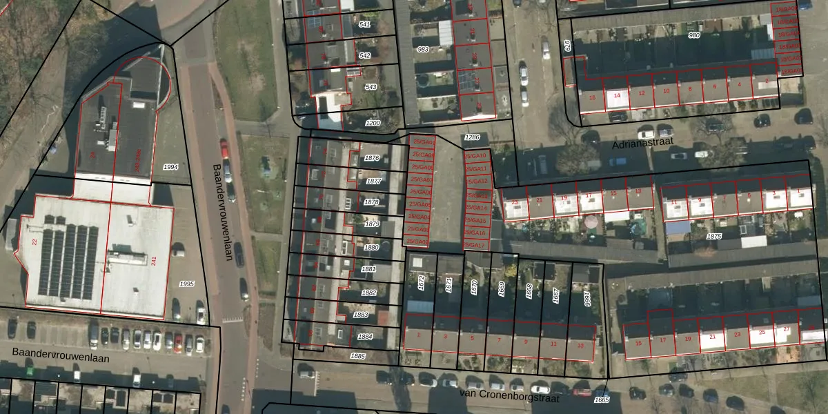 Adrianastraat 25-GA05 is gelegen op kadastraal perceel BTL00M1875. Deze kadastrale aanduiding is uniek en wordt gebruikt door het Kadaster om eigendomsrechten en andere zakelijke rechten vast te leggen. Het perceel maakt onderdeel uit van de kadastrale gemeente Boxtel.