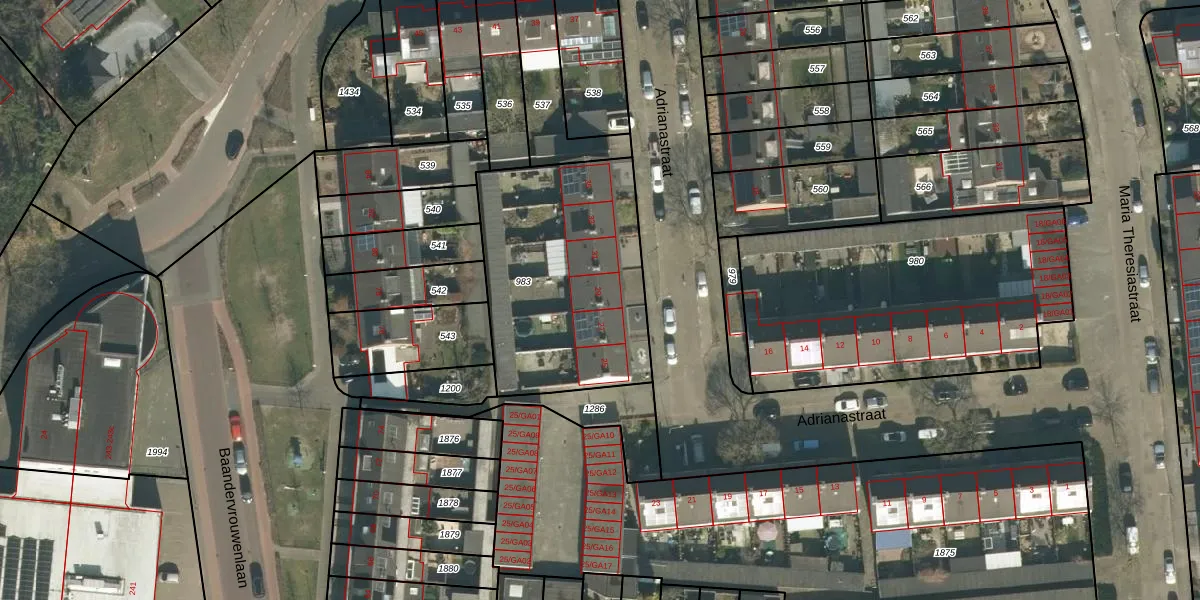 Adrianastraat 29 is gelegen op kadastraal perceel BTL00M983. Deze kadastrale aanduiding is uniek en wordt gebruikt door het Kadaster om eigendomsrechten en andere zakelijke rechten vast te leggen. Het perceel maakt onderdeel uit van de kadastrale gemeente Boxtel.