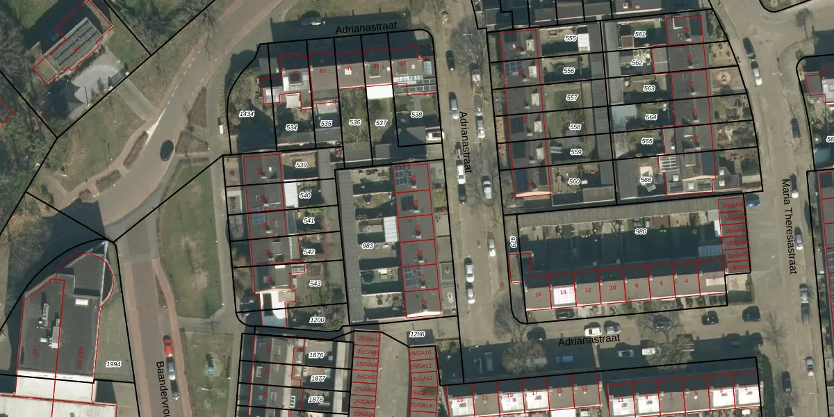Adrianastraat 33 is gelegen op kadastraal perceel BTL00M983. Deze kadastrale aanduiding is uniek en wordt gebruikt door het Kadaster om eigendomsrechten en andere zakelijke rechten vast te leggen. Het perceel maakt onderdeel uit van de kadastrale gemeente Boxtel.