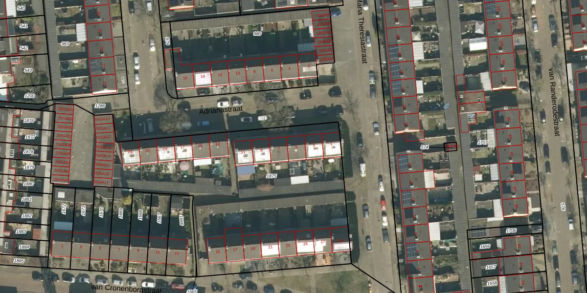 Het perceel waarop Adrianastraat 5 staat heeft een oppervlakte van 3544 m². Dit is een zeer groot perceel. De perceeloppervlakte wordt geregistreerd door het Kadaster. Gedetailleerde informatie over de maten van dit perceel kunt u vinden in het rapport Kadastrale kaart met maatvoering van Adrianastraat 5.
