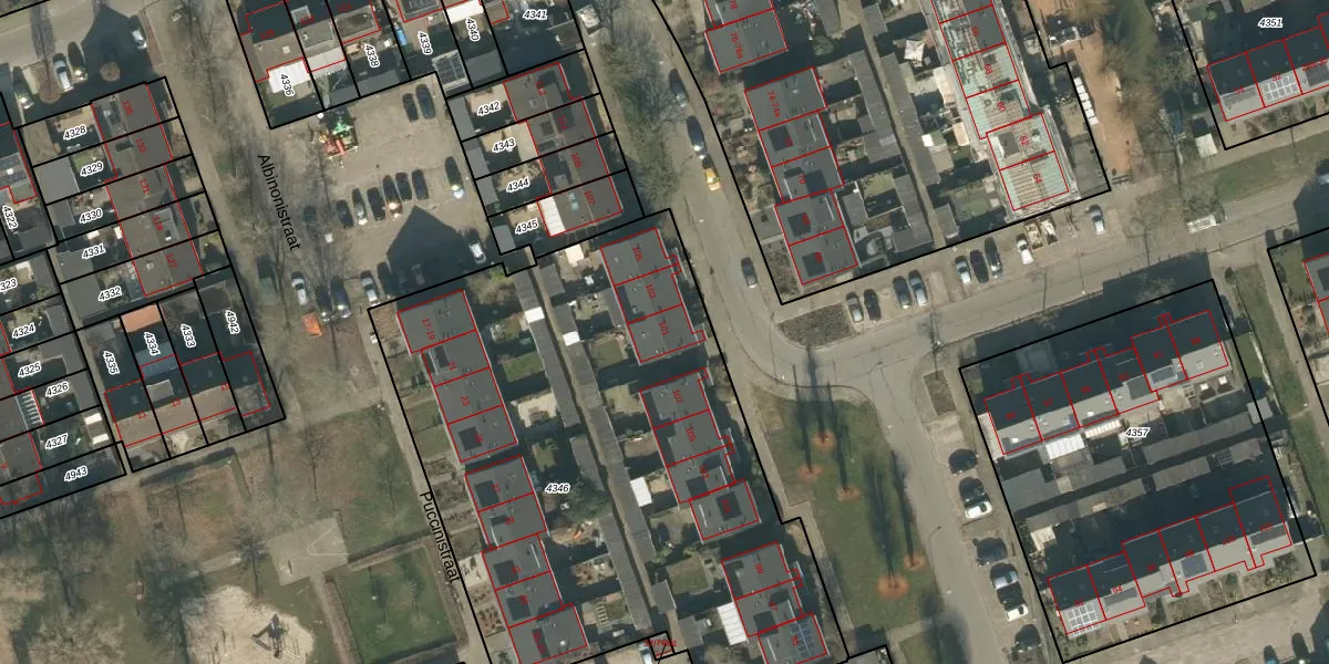 Het perceel waarop Albinonistraat 101 staat heeft een oppervlakte van 3196 m². Dit is een zeer groot perceel. De perceeloppervlakte wordt geregistreerd door het Kadaster. Gedetailleerde informatie over de maten van dit perceel kunt u vinden in het rapport Kadastrale kaart met maatvoering van Albinonistraat 101.