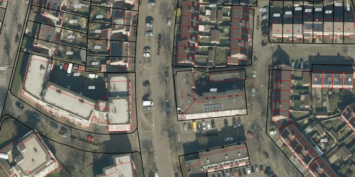 Het perceel waarop Annastraat 196 staat heeft een oppervlakte van 1047 m². Dit is een zeer groot perceel. De perceeloppervlakte wordt geregistreerd door het Kadaster. Gedetailleerde informatie over de maten van dit perceel kunt u vinden in het rapport Kadastrale kaart met maatvoering van Annastraat 196.