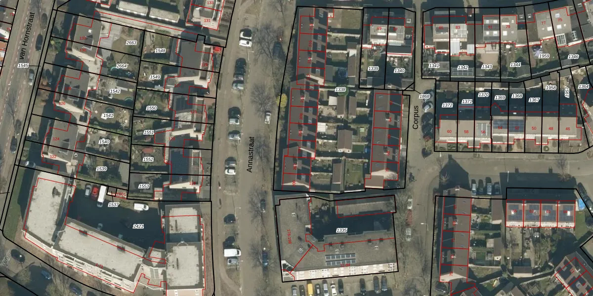 Het perceel waarop Annastraat 204 staat heeft een oppervlakte van 2185 m². Dit is een zeer groot perceel. De perceeloppervlakte wordt geregistreerd door het Kadaster. Gedetailleerde informatie over de maten van dit perceel kunt u vinden in het rapport Kadastrale kaart met maatvoering van Annastraat 204.