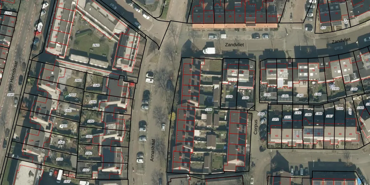Het perceel waarop Annastraat 214 staat heeft een oppervlakte van 2185 m². Dit is een zeer groot perceel. De perceeloppervlakte wordt geregistreerd door het Kadaster. Gedetailleerde informatie over de maten van dit perceel kunt u vinden in het rapport Kadastrale kaart met maatvoering van Annastraat 214.