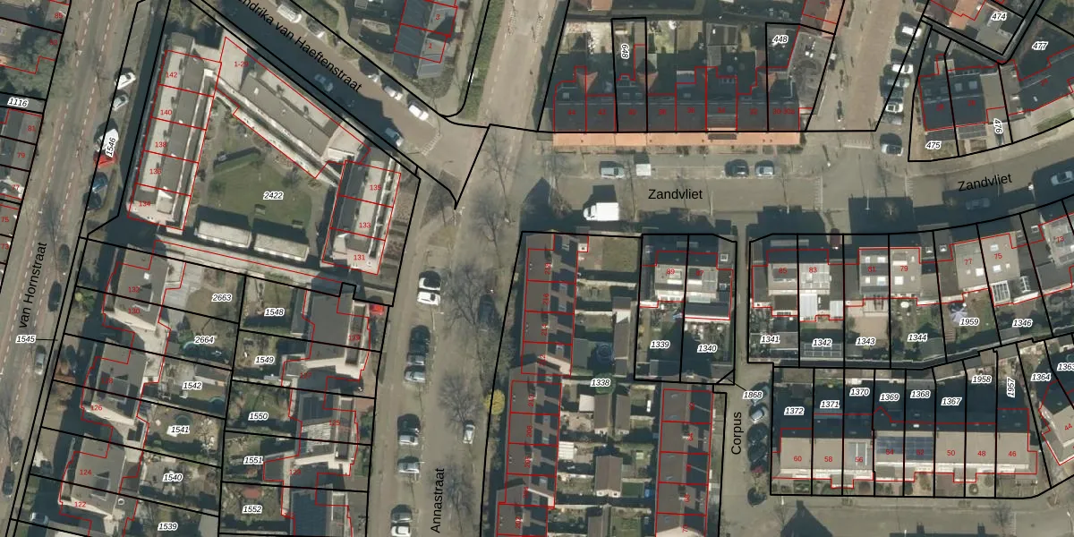 Het perceel waarop Annastraat 218 staat heeft een oppervlakte van 2185 m². Dit is een zeer groot perceel. De perceeloppervlakte wordt geregistreerd door het Kadaster. Gedetailleerde informatie over de maten van dit perceel kunt u vinden in het rapport Kadastrale kaart met maatvoering van Annastraat 218.