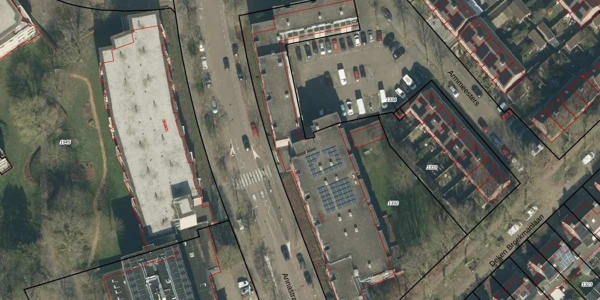 Het perceel waarop Annastraat 44 staat heeft een oppervlakte van 3569 m². Dit is een zeer groot perceel. De perceeloppervlakte wordt geregistreerd door het Kadaster. Gedetailleerde informatie over de maten van dit perceel kunt u vinden in het rapport Kadastrale kaart met maatvoering van Annastraat 44.