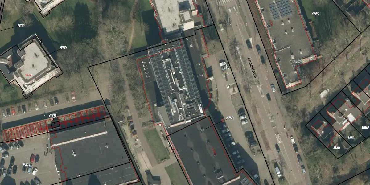 Het perceel waarop Annastraat 5-209 staat heeft een oppervlakte van 6369 m². Dit is een zeer groot perceel. De perceeloppervlakte wordt geregistreerd door het Kadaster. Gedetailleerde informatie over de maten van dit perceel kunt u vinden in het rapport Kadastrale kaart met maatvoering van Annastraat 5-209.