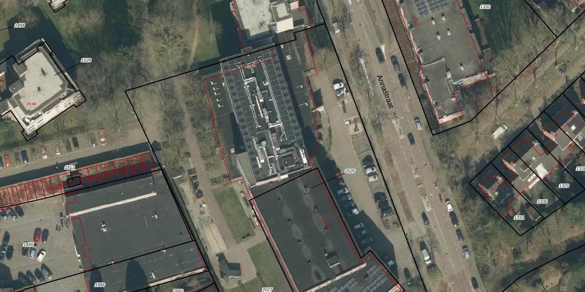 Het perceel waarop Annastraat 5-201 staat heeft een oppervlakte van 6369 m². Dit is een zeer groot perceel. De perceeloppervlakte wordt geregistreerd door het Kadaster. Gedetailleerde informatie over de maten van dit perceel kunt u vinden in het rapport Kadastrale kaart met maatvoering van Annastraat 5-201.